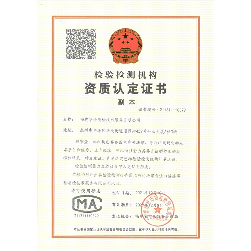 版權(quán)所有 © 2022 福建華檢質(zhì)檢技術(shù)服務(wù)有限公司 工信備案:閩ICP備16011251號(hào)-1 公安備案:閩公網(wǎng)安備35050302000897號(hào)